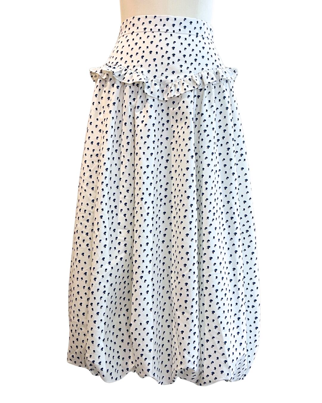 たっぷりと生地を使用したボリュームのあるバルーンシルエットが、コーデに華を添えてくれるロングスカート。