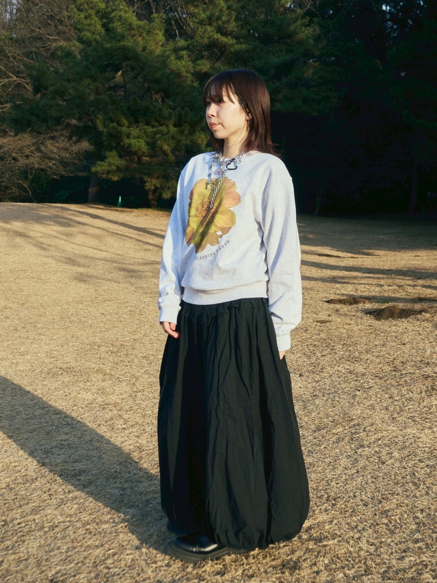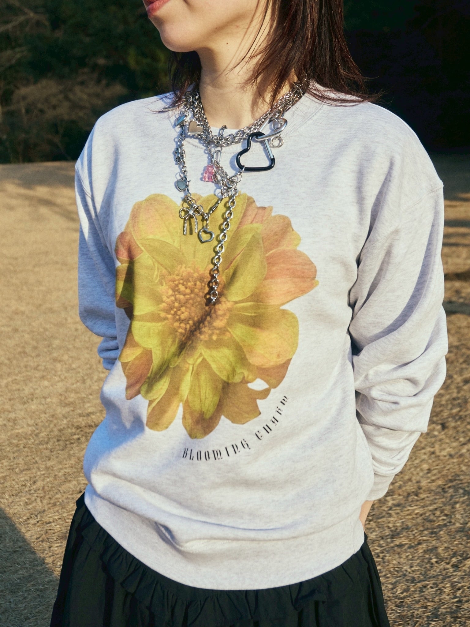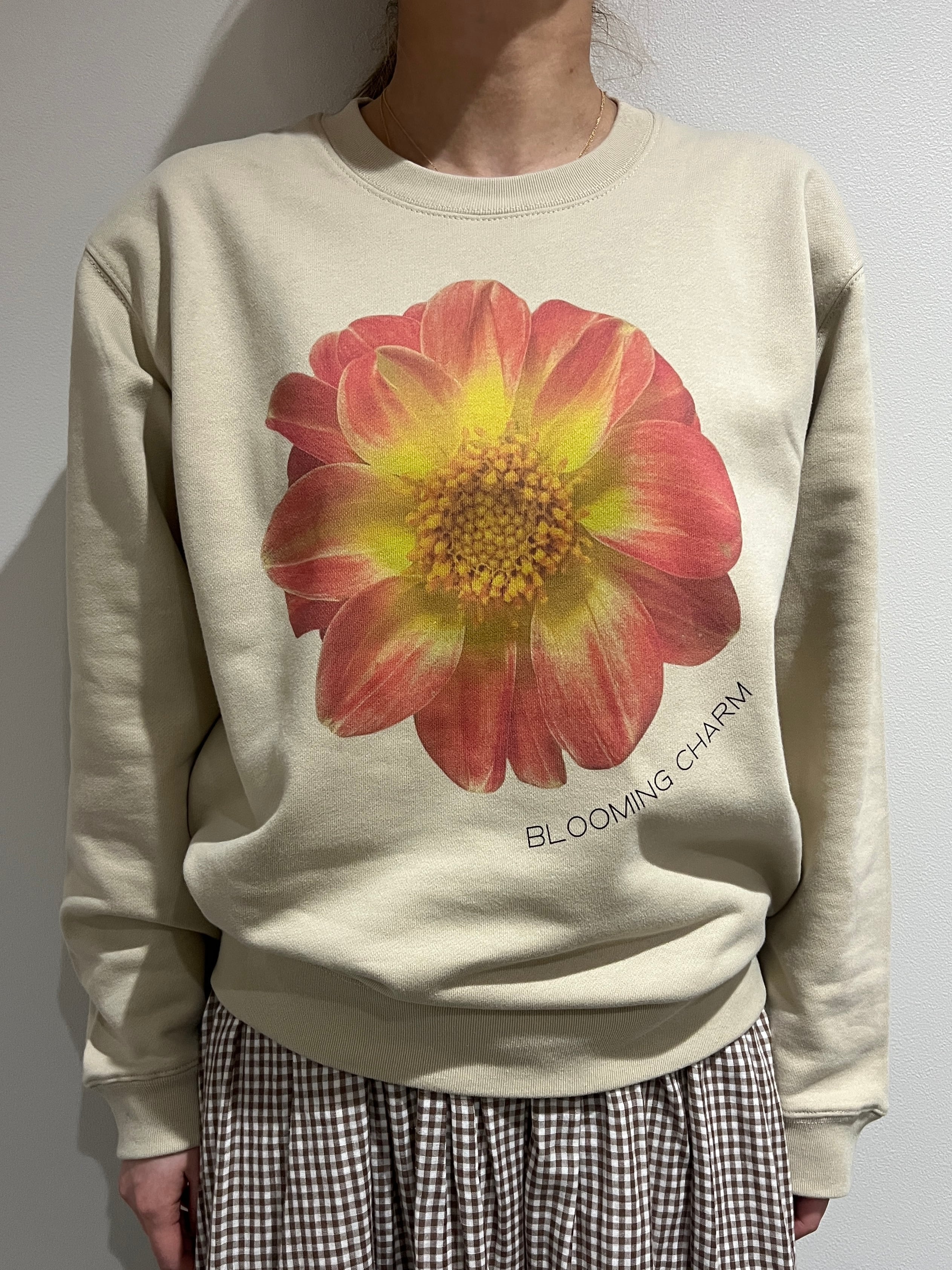 フロントに大きくあしらったダリアが印象的なスウェット。